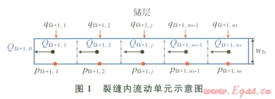 假設(shè)流體經(jīng)過裂縫面進(jìn)入裂縫后向水平井筒的流動為一維線性流動(圖1)。為了便于計算,將微元段處理成矩形進(jìn)行汁算,裂縫寬度為wfk+1,以計算流體在裂縫中流動時產(chǎn)生的壓力降落。