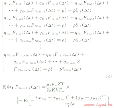 如果井底壓力(pwf)已知,聯(lián)立方程式(5)、(8)便可求得每個線匯的產(chǎn)量,根據(jù)式(9)就可求得總產(chǎn)量。