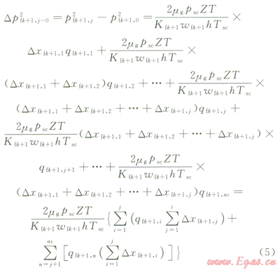 當(dāng)儲層流體為氣時,根據(jù)壓力函數(shù)的定義和真實(shí)氣體狀態(tài)方程,并將地下產(chǎn)量轉(zhuǎn)換成地面標(biāo)準(zhǔn)情況下的氣體產(chǎn)量[4,10],式(3)可寫為: