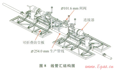 生產(chǎn)管匯的主要功能要求為:接受來自井口的生產(chǎn)氣體、提供關(guān)閉井口來流功能、提供溫壓監(jiān)控、承受系統(tǒng)的設(shè)計壓力、承受由外部跨界管/漁網(wǎng)拖掛/地震等載荷、為清管或收發(fā)球提供平臺等。管匯的組成包括管匯基礎(chǔ)、結(jié)構(gòu)支撐和框架、管線和閥門、臨時收發(fā)球裝置、水下連接器系統(tǒng)和陽極保護(hù)。