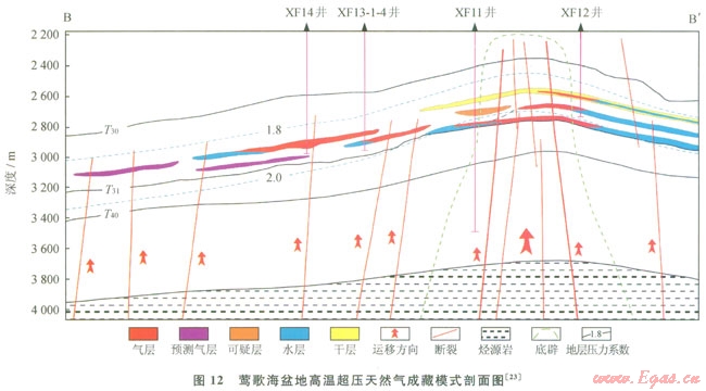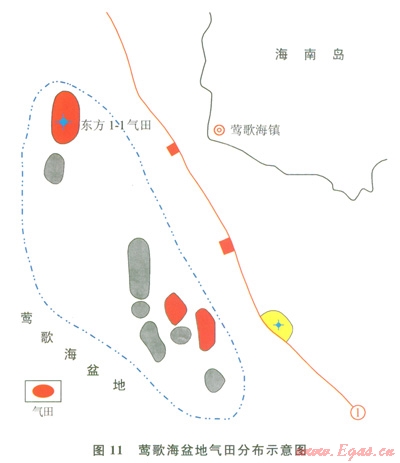 鶯歌海盆地油氣勘探始于20世紀(jì)50年代,經(jīng)過多年來持續(xù)不懈地勘探,在鶯中凹陷中央背斜帶的背斜和巖性圈閉獲得了一批重要發(fā)現(xiàn),其中東方l-l氣田和東方l3氣田(包括東方l3-1和東方13-12)都是千億立方米級別的大氣田。勘探與研究成果均顯示鶯歌海盆地是一個(gè)氣型盆地。