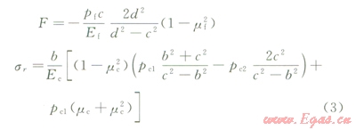水泥環(huán)應(yīng)力分布及一界面處水泥環(huán)位移計算公式: