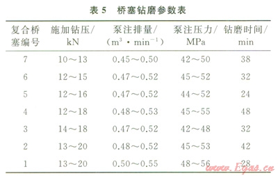 自主研制生產(chǎn)的新型速鉆復(fù)合橋塞已成功應(yīng)用已20余井次,橋塞動(dòng)作靈活,密封可靠,鉆磨效率高,表2為其中5口井的施工參數(shù),下面針對(duì)某一實(shí)例井的應(yīng)用情況進(jìn)行分析。