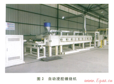 纏繞成型是在控制纖維張力和預(yù)定線(xiàn)型的條件下,利用了浸膠機(jī)、纏繞機(jī)等設(shè)備將連續(xù)的纖維粗紗或布帶浸漬了特殊樹(shù)脂膠液后纏繞在相應(yīng)制品內(nèi)腔尺寸的芯?;騼?nèi)襯上,使用固化爐控制升溫率加熱至設(shè)定溫度,使復(fù)合材料固化成要求的形狀。
