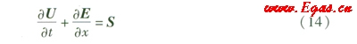 將方程組(13)表示成非線性雙曲型守恒律形式[6]: