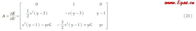 A為通量E的Jacobian矩陣,其表達(dá)式為式(21):