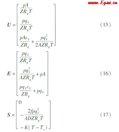 氣體在管道內(nèi)流動(dòng)的連續(xù)性方程可由式(1)表示[2]: