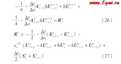式中ee(4)——四階耗散修正系數(shù),取0.1
