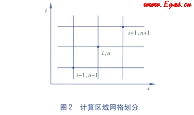 采用Crank-Nicolson格式對上式進(jìn)行離散可得(計(jì)算區(qū)域網(wǎng)絡(luò)劃分見圖2):