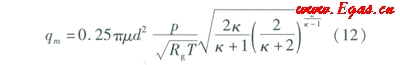 泄漏點(diǎn)處氣流處于臨界泄漏階段,管道泄漏率方程為式(12) [5]: