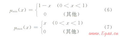 由于求得的結(jié)果事件都以模糊數(shù)表示,為了對(duì)比風(fēng)險(xiǎn)的大小,需要將模糊數(shù)轉(zhuǎn)化為相應(yīng)的概率值,即FPS(Fuzzy Possibility Score)。在模糊集理論中,這個(gè)過(guò)程又叫解模糊化,這里是基于Chen和Hwang提出的模糊最大和最小集合方法[10]。該方法定義的最小及最大模糊集分別為: