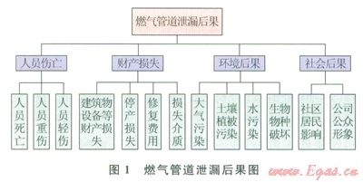 當(dāng)燃?xì)夤艿腊l(fā)生泄漏后,會(huì)給人員、財(cái)產(chǎn)、環(huán)境及社會(huì)帶來(lái)不同程度的影響。其后果就從人員、財(cái)產(chǎn)、環(huán)境及社會(huì)4方面來(lái)考慮,具體受影響因素參照?qǐng)Dl。