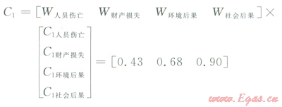 式中A1表示人員傷亡、A2表示財(cái)產(chǎn)損失、A3表示環(huán)境后果、A4表示社會(huì)后果。