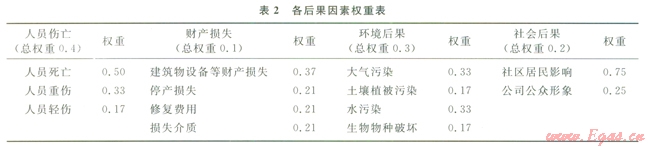 2.1 確定各后果因素的權(quán)重系數(shù)