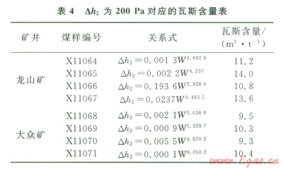 從表4可以看出,龍山礦無(wú)煙煤Dh2為200 Pa對(duì)應(yīng)的瓦斯含量為10.8~14.0m3/t,平均為l2.4m3/t;大眾礦貧煤對(duì)應(yīng)的瓦斯含量為9.3~10.4m3/t,平均為9.9m3/t。從實(shí)驗(yàn)結(jié)果來(lái)看,龍山礦瓦斯含量在10.8m3/t就有百丁能具有突出危險(xiǎn)性;而大眾礦瓦斯含量在9.3m3/t就可能發(fā)生突出。