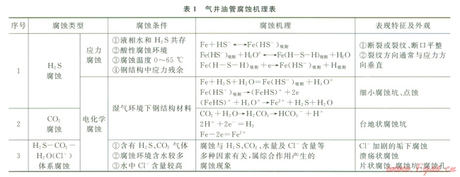 氣井大修過程中起m油管腐蝕檢測及分析結(jié)果表明,靖邊氣田氣井油管電化學(xué)腐蝕與應(yīng)力腐蝕同時存在,但主要發(fā)生由H2S—CO2—H2O(C1—)體系引起的電化學(xué)腐蝕[2],見表1。