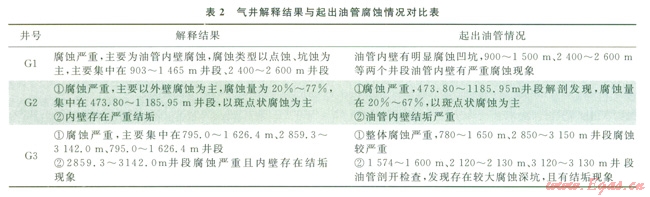 結(jié)合氣井更換油管作業(yè),將3口氣井起出油管的腐蝕情況與測井解釋結(jié)果進(jìn)行對比,結(jié)果見表2。