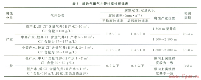 結(jié)合油管腐蝕因素分析情況以及靖邊氣田氣井腐蝕檢測結(jié)果,靖邊氣田氣井油管腐蝕總體規(guī)律見表3。