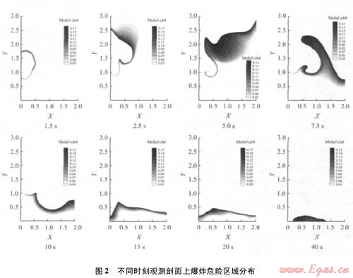 采用有限體積的離散方法,并采用改進(jìn)的SIM-PLE算法解決瞬態(tài)流場(chǎng)中壓力與速度間的耦合問題?;谏逃?/span>CFD軟件FLUENT對(duì)該泄漏擴(kuò)散過程進(jìn)行了數(shù)值模擬。