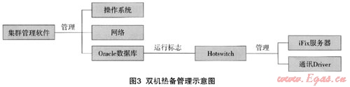 整個(gè)系統(tǒng)的切換由集群管理軟件和HotSwitch軟件管理,其關(guān)系如圖3。