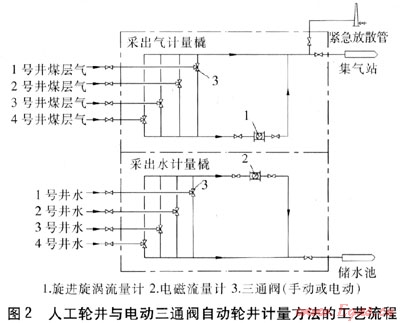 優(yōu)點(diǎn):利用電動(dòng)三通閥,可實(shí)現(xiàn)對(duì)各單井計(jì)量的自動(dòng)切換,減少了人工切換的工作量;任何一口單井發(fā)生故障,都不會(huì)影響到其他井的排采。缺點(diǎn):井?dāng)?shù)越多,可連續(xù)計(jì)量的時(shí)間越短;受供電系統(tǒng)影響較大,若供電系統(tǒng)發(fā)生故障,將無法實(shí)現(xiàn)自動(dòng)輪井計(jì)量;造價(jià)較高。造價(jià):采出氣計(jì)量橇約9.5×104元.采出水計(jì)量橇約8.3×104元。