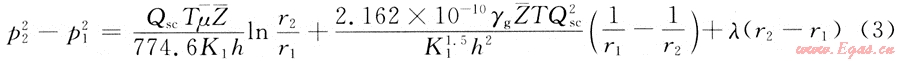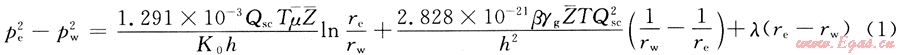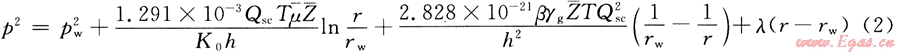 氣井的產(chǎn)量為Qsc,氣體的黏度為μ,氣體的偏差系數(shù)為Z,啟動壓力梯度為λ,結(jié)合氣井的穩(wěn)態(tài)產(chǎn)能方程[3],同時考慮啟動壓力梯度,有