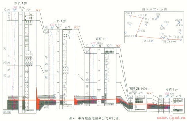 1)貴州省下寒武統(tǒng)牛蹄塘組主要分布于黔北、黔中及黔東 黔東南地區(qū),頁巖層段位于牛蹄塘組下部,巖性主要為含粉砂一粉砂質(zhì)、碳質(zhì)泥巖頁巖。