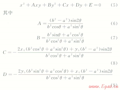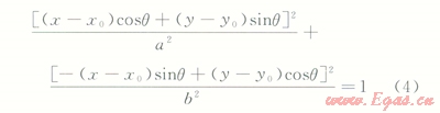 在平面內(nèi)要確定1個(gè)橢圓共需5個(gè)參數(shù):橢圓中心坐標(biāo)(x0,y0)、長軸半徑a、短軸半徑b、長軸與x軸的夾角q。則在平面任意位置橢圓的方程可表示: