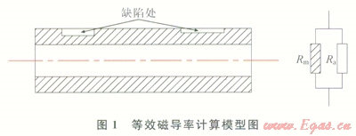 油管本體是低碳合金鋼材質(zhì),金屬被腐蝕或產(chǎn)牛裂紋的部位一般由低磁導(dǎo)率物質(zhì)(空氣或其他氣體)填充,從而導(dǎo)致油管在缺陷處的等效磁導(dǎo)率與本體存在差異,磁場(chǎng)強(qiáng)度不同。假設(shè)連續(xù)油管裂紋或腐蝕部位由空氣填充,建立如圖1所示的計(jì)算模型。