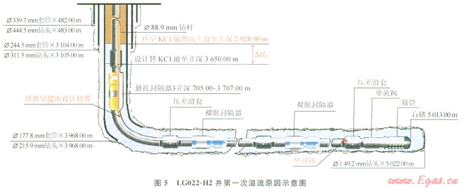 3)用KC1液替水平段鉆井液過程中,發(fā)生溢流時若坐封球已投入,管柱無有效循環(huán)通道,無法實施壓井。如:LG022-H2井只能在環(huán)空泄壓情況下繼續(xù)送球入座待坐封丟手后再進行處理。