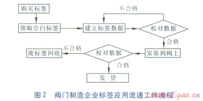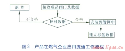 標簽在閥門制造企業(yè)實現(xiàn)應用流通的工作流程和產(chǎn)品在燃氣企業(yè)應用流通的工作流程見圖2、3。
