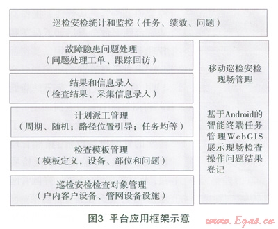 2012年12月到2013年3月,集團(tuán)完成了平臺的整體規(guī)劃,在完成軟件設(shè)計代碼的同時,完成安檢巡檢的業(yè)務(wù)流程梳理規(guī)范,建立戶內(nèi)外設(shè)備的數(shù)據(jù)規(guī)范和收集整理;同期完成無線網(wǎng)絡(luò)搭建和終端設(shè)備的比選試用。