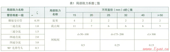 式中:∑z——計算管段總局部阻力系數(shù)值;