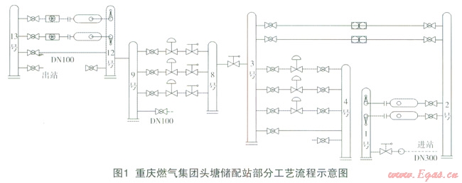 利用前面介紹的方法,對重慶燃?xì)饧瘓F(tuán)股份有限公司某儲配站進(jìn)行計算,該儲配站部分工藝流程示意圖見圖1。
