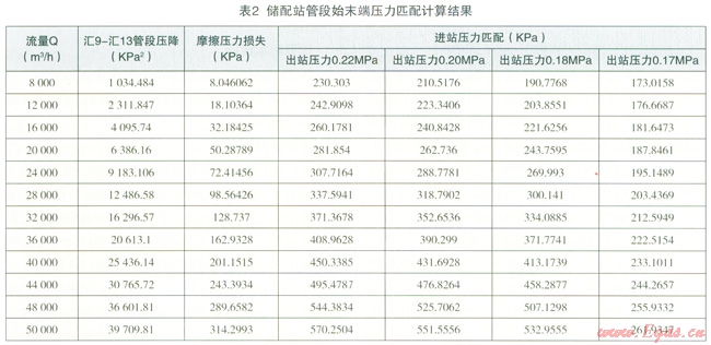 通過計算得到儲配站在不同流量下進(jìn)、出站壓力匹配計算結(jié)果見表2。