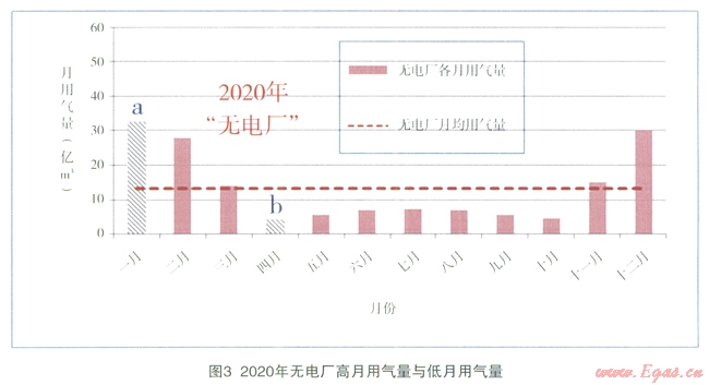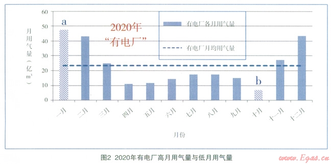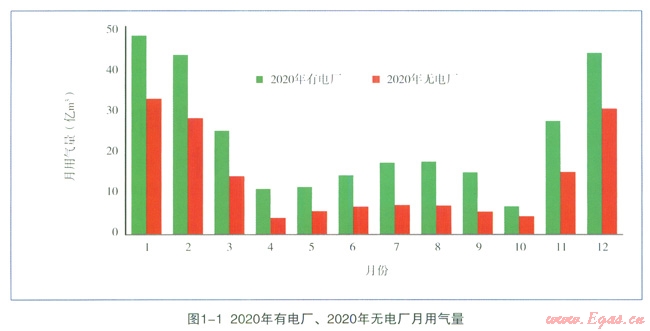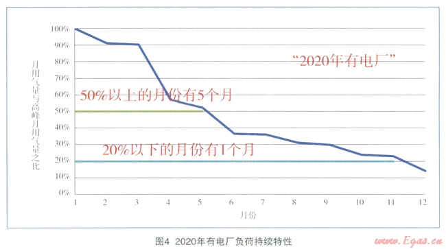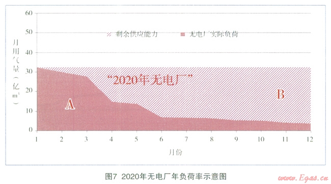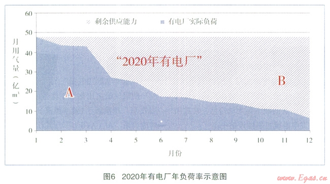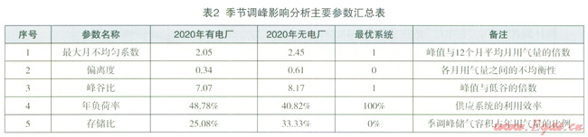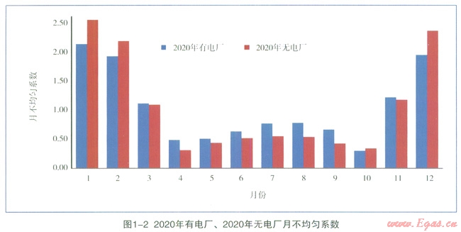 預計到2020年,“有電廠”的偏離度為0.34,“無電廠”為0.61,“有電廠”可以明顯縮小各月間用氣的不均勻性,使一年內(nèi)的負荷變化趨于平衡。