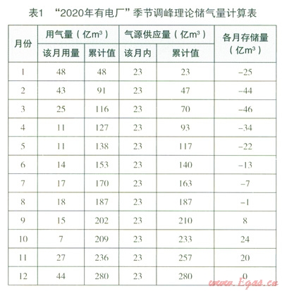 用以上方法計算得到:對于第一種情況“2020年有電廠”,平衡一年中各月不均勻用氣所需的儲氣量為70億m3;第二種情況“2020年無電廠,”季節(jié)調(diào)峰理論儲氣量53億m3。