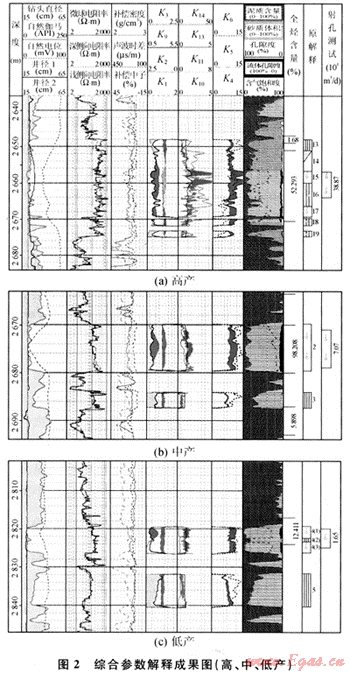 研究表明儲層綜合特征參數(shù)(或測井比值參數(shù))對巖性、物性和含氣性的反映具有較好的敏感性。測井曲線特征值能快速直觀地區(qū)分儲集層和干層,同時對識別儲集層產(chǎn)能大小具有快速簡便、實用的特點。