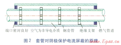 摘 要:分析套管對(duì)城鎮(zhèn)燃?xì)饴竦劁摴荜帢O保護(hù)電流產(chǎn)生屏蔽的原因,提出了解決方法。