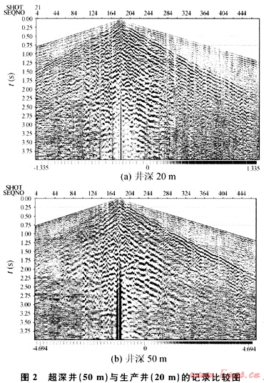 考慮到施工成本、施工效率和資料品質(zhì)等方面的因素,生產(chǎn)過(guò)程中可以部分井采取超深井激發(fā),并適當(dāng)降低疊加次數(shù),減少炮數(shù)、按少放炮多鋪道的原則,可以一定程度地緩解超深井所帶來(lái)的成本增加矛盾。
