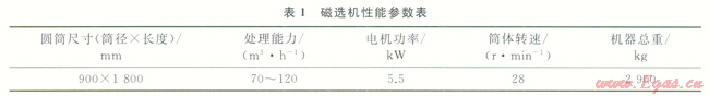 代入數(shù)據(jù)得滾筒半徑為0.145m,則滾筒的直徑為290mm,磁鼓的線(xiàn)速度為228.6m/min。設(shè)汁的磁選機(jī)滾筒直徑為900mm,滾筒最大轉(zhuǎn)速為40r/min。磁選機(jī)的性能參數(shù)如表1所示。