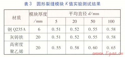 經(jīng)多次實驗驗證,在燃?xì)獾蛪汗鉅顩r下,改變?nèi)細(xì)獾膲毫?span lang="EN-US">(緩沖罐內(nèi)燃?xì)鈮毫?span lang="EN-US">),測試的K值不變,且K值受模塊壁厚影響甚微。由此得出管道裂縫流量修正系數(shù)K的取值范圍,見表4。