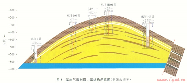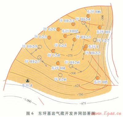 綜上所述,東坪基巖氣藏埋藏深、巖性為致密的花崗巖或花崗片麻巖,儲集空間以基質(zhì)溶蝕孔和裂縫為主,儲集體內(nèi)非均質(zhì)性強、平面和縱向物性差異大,氣藏含氣井段長、分層性差,地層溫度高、壓力大,對氣水分布關系等地質(zhì)認識還不夠清楚和明確。通過對基巖儲層有利區(qū)帶進行預測研究和氣藏工程研究,認識到氣田開發(fā)應該遵循“分批實施、滾動上產(chǎn)”的原則,堅持直井和水平井相結(jié)合、井點與井組相結(jié)合、高產(chǎn)區(qū)與低滲透區(qū)措施增產(chǎn)相結(jié)合等做法,不斷總結(jié)經(jīng)驗、完善開發(fā)技術。目前,青海油田在該區(qū)已經(jīng)獲得一定規(guī)模的天然氣產(chǎn)量。但是,針對基巖氣藏內(nèi)幕的復雜性,仍然需要將三維地震資料、測井資料和生產(chǎn)測試資料相結(jié)合,加強對裂縫系統(tǒng)及其含氣性、氣水關系和層段間的連通性、儲層參數(shù)等開展進一步評價研究,力爭在東坪氣區(qū)建成15×108~20×108m3的年產(chǎn)規(guī)模,為建成國內(nèi)唯一的高原千萬噸級油氣田作出新貢獻。