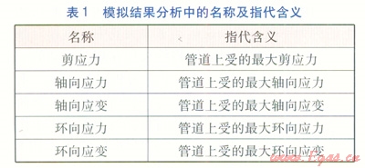 模擬結(jié)果分析中的名稱(chēng)及指代含義見(jiàn)表1。埋地管道內(nèi)水流速為10m/min。