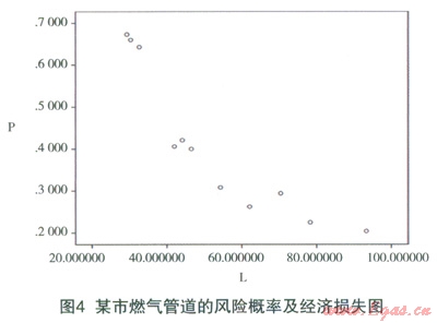 通過上述步驟可得知,燃氣管道在每一規(guī)定時間段內(nèi)(如1年)發(fā)生事故的概率以及事故發(fā)生后所造成的經(jīng)濟損失,使用回歸分析法對數(shù)據(jù)進行擬合。