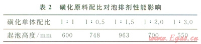 2.1.4磺化合成原料配比對(duì)起泡性能的影響