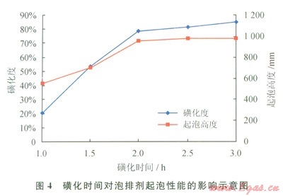 2.1.6磺化時(shí)間對(duì)起泡性能的影響
