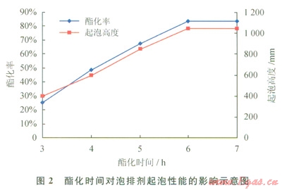 2.1.3酯化時(shí)間對(duì)泡排劑起泡性能的影響