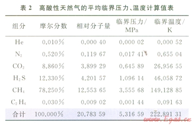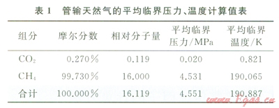 平均臨界壓力(p¢c)及平均臨界溫度(T¢c)計(jì)算結(jié)果見表1。