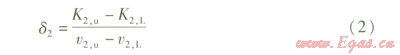 在v1一定的條件下,總換熱系數(shù)絕對變化率d2的計(jì)算式為: